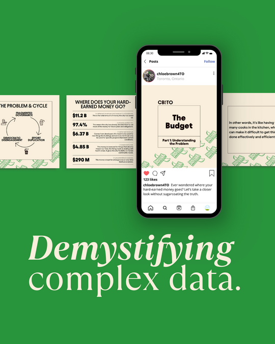 For the Chloe Brown for Mayor Campaign in Toronto 2023, Chloe faced immense challenges from the outset. Competing in a race with a staggering 102 candidates, she had been an underrepresented figure, especially considering her commendable 3rd place finish in the previous election. The campaign faced further hurdles as Chloe was excluded from key debates and lacked mainstream media coverage. This context necessitated a "guerilla style" approach: